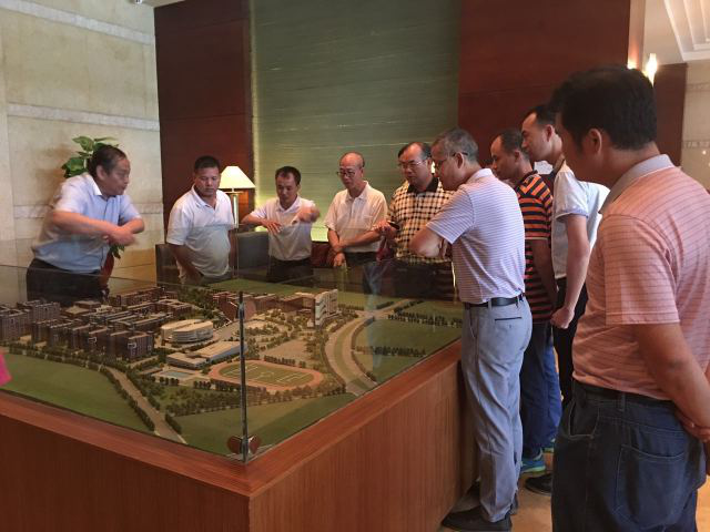 李光玉副院长借助学院沙盘向参观的领导、老师们介绍我院校园建设发展规划。