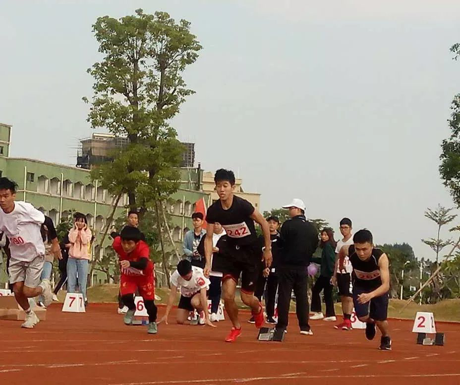 在此过程中242号郭敏涛同学在100冲刺比赛过程中不慎摔倒,但以顽强的体育精神在跌倒中爬起来跑完全程这种永不放弃的精神值得我们学习。