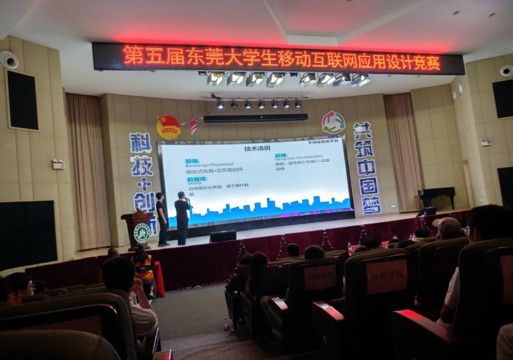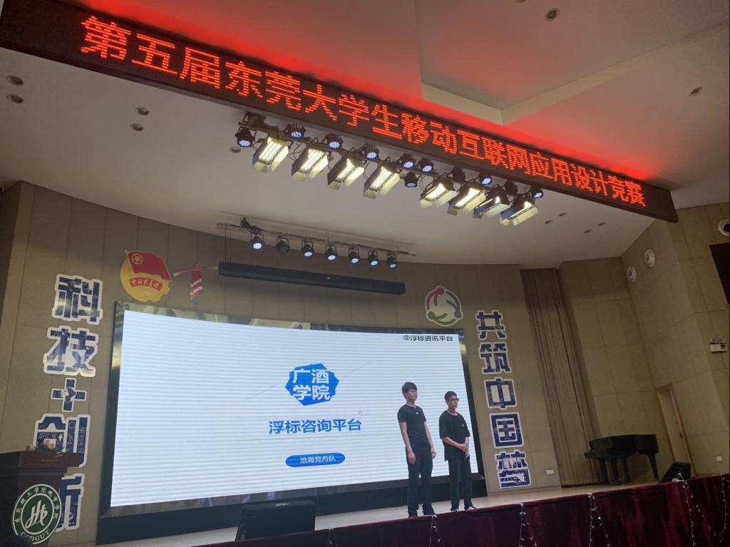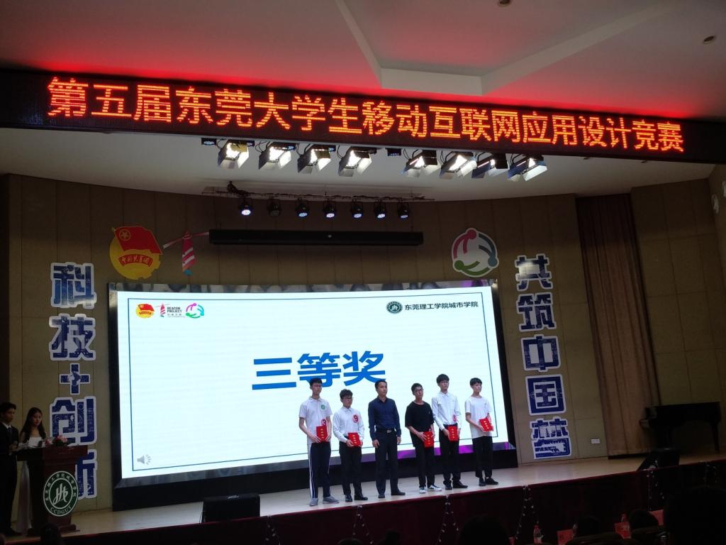 我校3名参赛选手蔡俊杰、黄振锋、林怡彬,在人工智能系何银川副主任和邓任锋老师的带领下,与东莞理工学院、东莞理工学院城市学院、广东科技学院、中山大学新华学院等多所在莞高校选手们展开激烈角逐。经组委会专家评审和现场路演,我校提交的作品”浮标资讯平台”获得东莞大学生移动互联网应用设计竞赛三等奖;何银川、邓任锋2位老师被评为优秀指导老师;